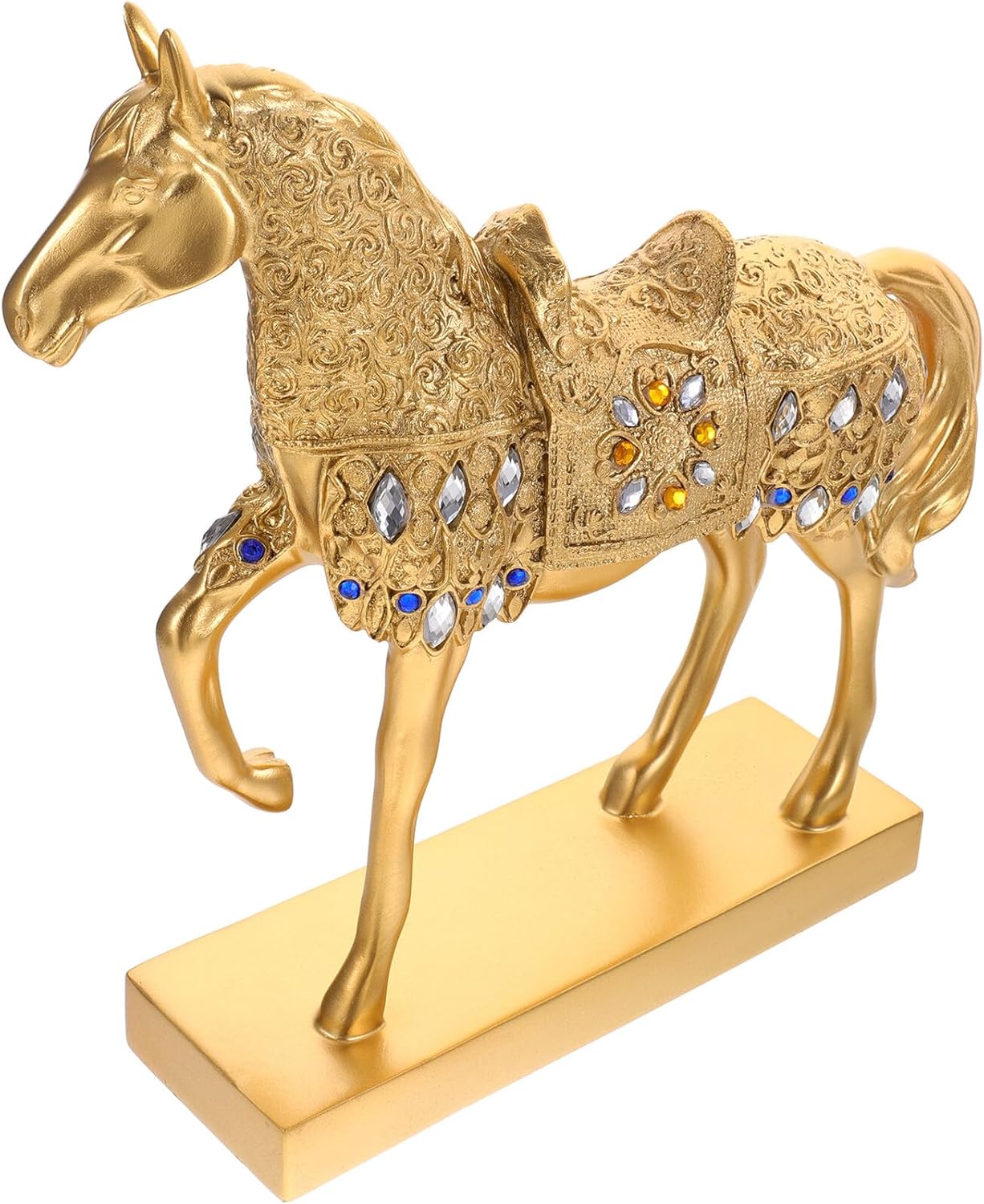 BESPORTBLE Gold Resin Horse Figurine Modern Farmhouse Decor for Living Office Bedroom Shelf Tabletop Sculpture Stylish Home Accent Collectible Art Ornament
