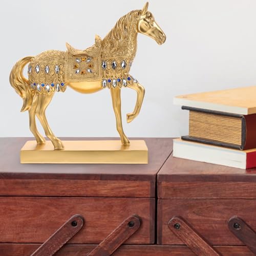 BESPORTBLE Gold Resin Horse Figurine Standing Model for Desktop Decor Elegant Tabletop Sculpture for Home Office Decoration Smooth Surface Artistic Horse Statue for Living and Entryway