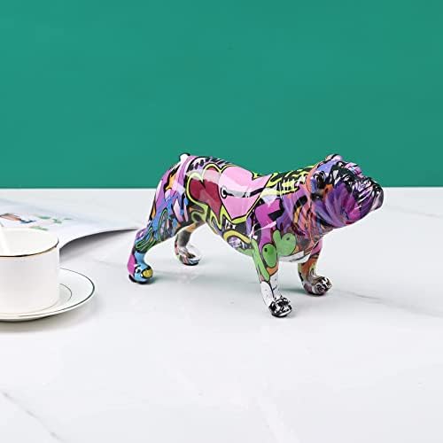 Colored Graffiti Bulldog Sculpture, Graffiti Art Standing British Bulldog French Bulldog Statue Decoration, Color Dog Fashion Resin Technology Decoration Dog (D)