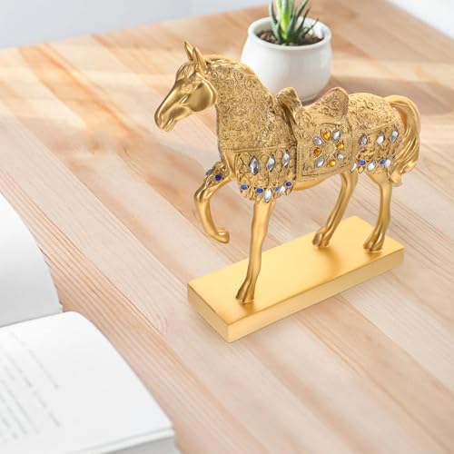 Gold-Plated Standing Horse Figurine Resin Sculpture for Modern Home Decor Vivid and Horse Statue Ornament for Living Office Bookshelf Display Creative Warm Accent