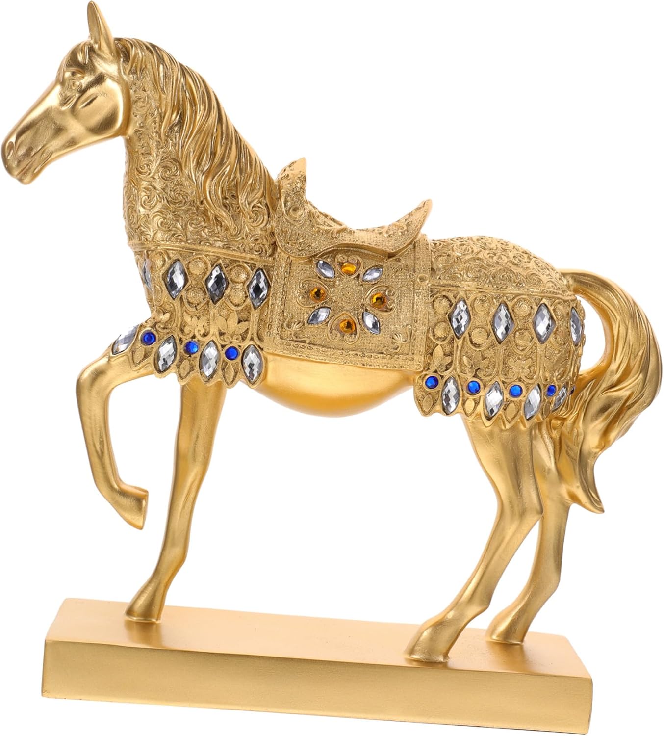 Package Include 1 Figurine Characteristics -Size:29.00X8.00X27.00cm/11.40X3.14X10.61in decorative resin decoration -Color:Golden resin horse -Material:Resin horse statue home decor – Small and , vivid and beautiful, it can add a warm and comfortable atmosphere to your room horse statue modern. – This stylish horse statue is a great present for housewarming, office decor, living rooms and bedrooms resin standing horse statue. – Not only a creative and practical ornament, but also a delicate and beautiful present, and an interesting for bookshelf decorations horse. – This decor made of workmanship, so is not easy to fade after a long time of use horse artwork. – With process details, the product is bright in color, comfortable to the touch, and has a texture horse ornament for decor.Goods Descriptionhorse statue modern This delicate horse adornment is a great decoration for your home or office.statue decor It features the delicate standing horse modeling design, which is delicate and creative.shelf standing ornaments This decor is made of selected resin material, which brings you the unique decorative effect.standing horse figurine It comes with the compact size without taking up too much space