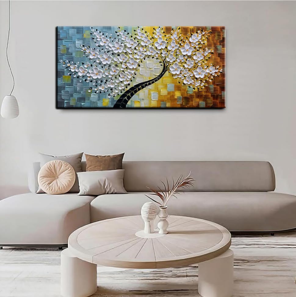 Be the first to review “YaSheng Art-Handmade White Flower Contemporary Art Oil Painting On Canvas 3D Texture Abstract Tree Paintings Modern Home Bedroom, Dining Room, Wall Art Decor Ready to Hang20x40inch”